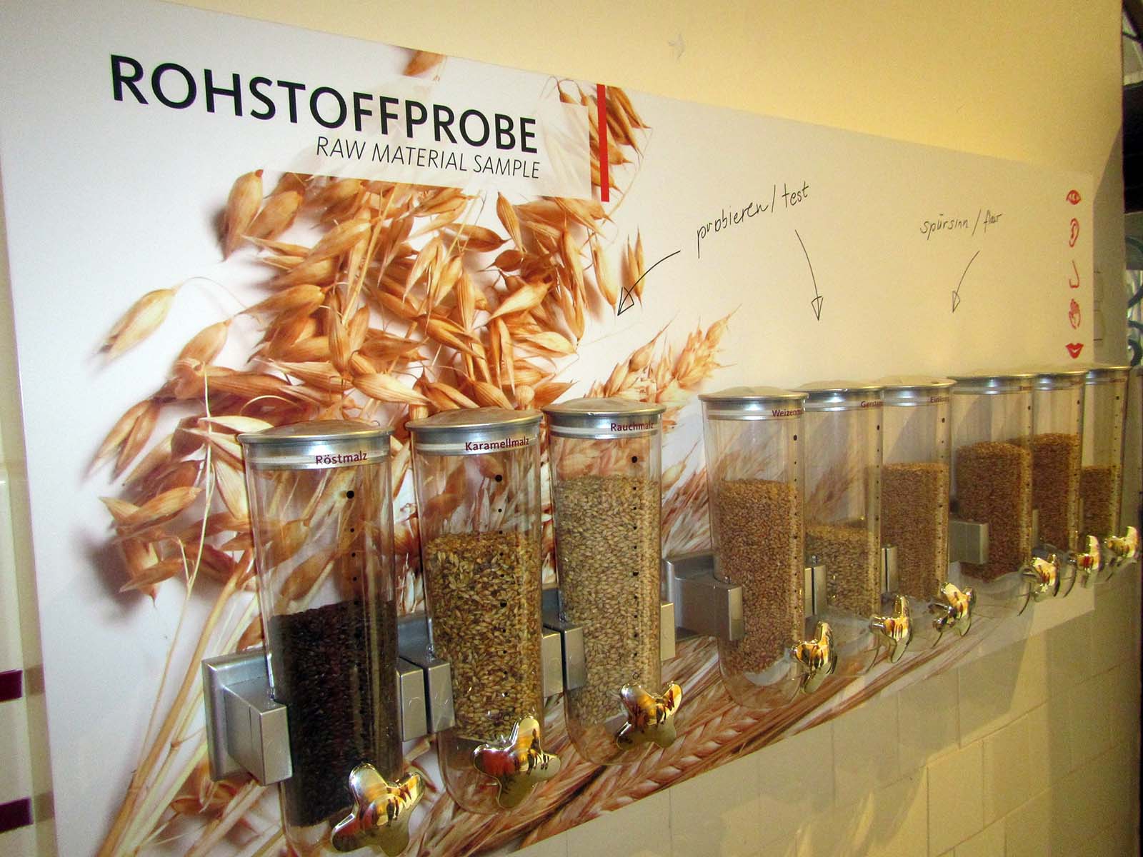 Nach den historischen Exponaten werden der Geruchs- und der Geschmackssinn getestet, bzw. bekommt man als Besucher die Möglichkeit unterschiedliche Röstgrade und damit Aromen von Gerste zu kosten. Die Nase wird beim „erriechen“ von verschiedenen Duftnoten, die alle in den unterschiedlichen Biersorten vorkommen auf eine besondere Probe gestellt.